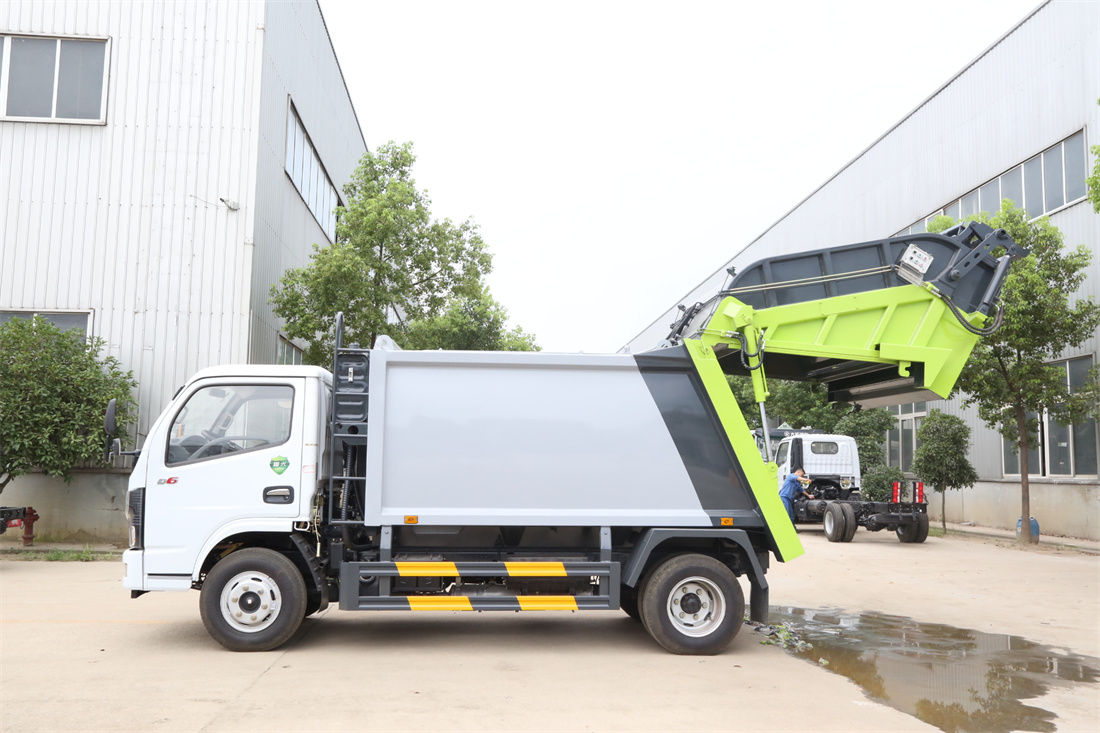 上裝配置:垃圾箱容積:6方,新款平面弧形廂體,廂體材料為武鋼優質碳鋼,PLC一鍵操作**,手電一體操作模式,兩側雙電控,帶駕駛室內操作,底板支撐加強,雙向壓縮,開放式易清潔污水箱。壓縮式垃圾車采用機電液一體化技術,借助機、電、液聯合自動**系統、電腦**、手動操作系統,通過填裝器和推鏟等專用裝置,實現垃圾倒入、壓碎或壓扁、強力裝填,把垃圾擠入車廂并壓實和推卸,污水全部進入污水廂,解決了垃圾運輸過程中的二次污染的問題。壓縮式垃圾車具有自動反復壓縮以及蠕動壓縮功能,壓縮比高、密封性好、裝載量大﹑操作方便、環保性好﹑整車利用功率高等優點。作業自動化,垃圾收集方式簡便、高效。后翻轉機構選裝:1、掛塑料桶式翻轉機構;2、掛鐵桶式翻轉機構;3、擺臂式翻轉機構; 4、簸箕斗式翻轉機構。