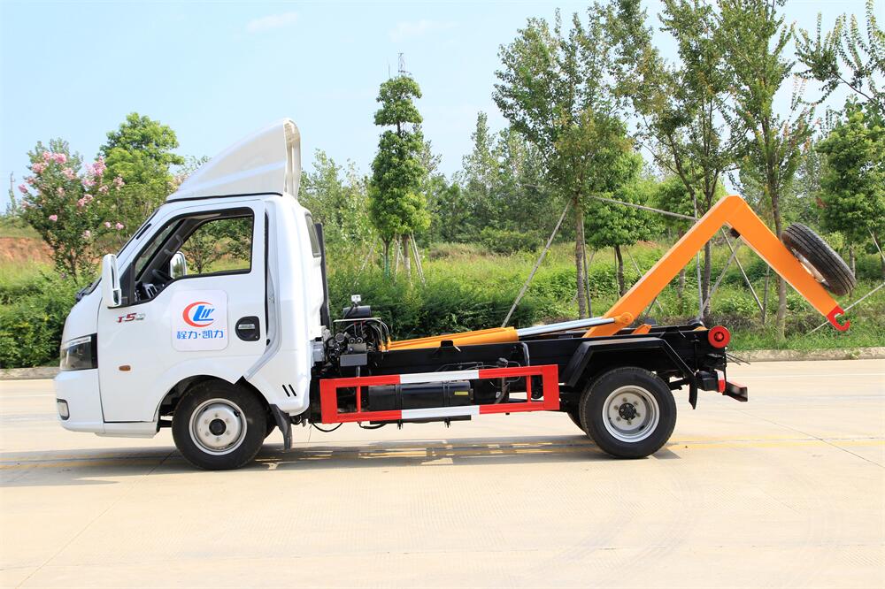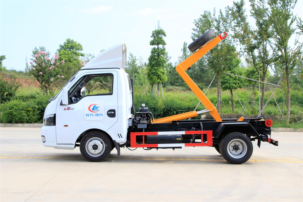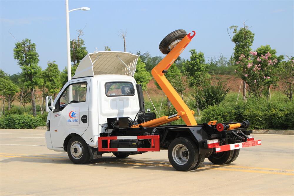 勾臂式垃圾車(車廂可卸式垃圾車)介紹: 車廂可卸式垃圾車又叫拉臂式垃圾車,是一種采用高新設(shè)計(jì)可伸縮的鉤臂,實(shí)現(xiàn)垃圾廂的二次吊裝,自吊上放下,可自行傾倒垃圾的環(huán)衛(wèi)設(shè)備。 拉臂式垃圾車結(jié)構(gòu)簡單,操作穩(wěn)定方便,裝卸效率高,機(jī)械化程度高,節(jié)省人力。鉤臂垃圾車一車可帶多個垃圾廂,在裝卸的運(yùn)輸過程中可有效地避免二次污染。 拉臂垃圾車采用高新設(shè)計(jì)可擺動的鉤臂,垃圾箱由框架、開啟油缸、滑輪、后門和若干加強(qiáng)框架與鋼板焊接而成。調(diào)換貨廂快捷方便,貨廂上帶蓋(倒垃圾時可翻開),鉤臂垃圾車?yán)鴰w可選用碳鋼、不銹鋼材質(zhì)、內(nèi)部采取環(huán)氧樹脂防腐處理,改裝部分與原車底盤為可分離式,維修方便且保持了原車的機(jī)動性及行駛性能。