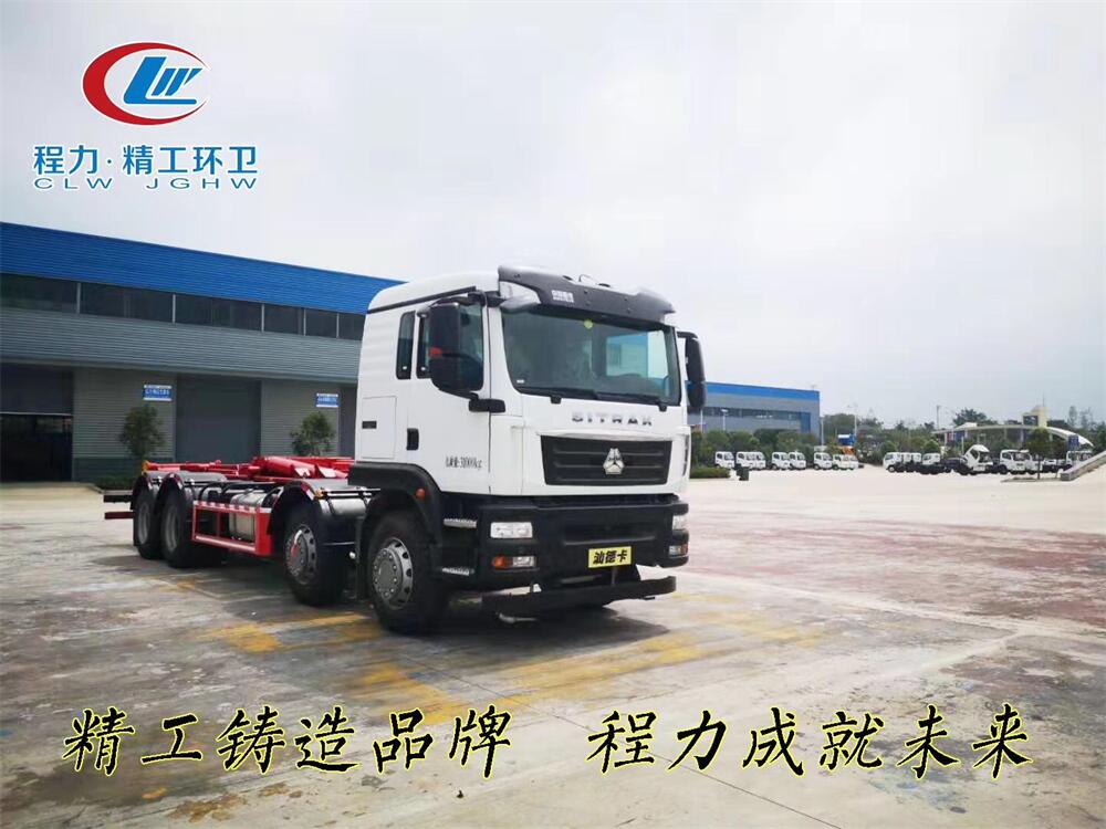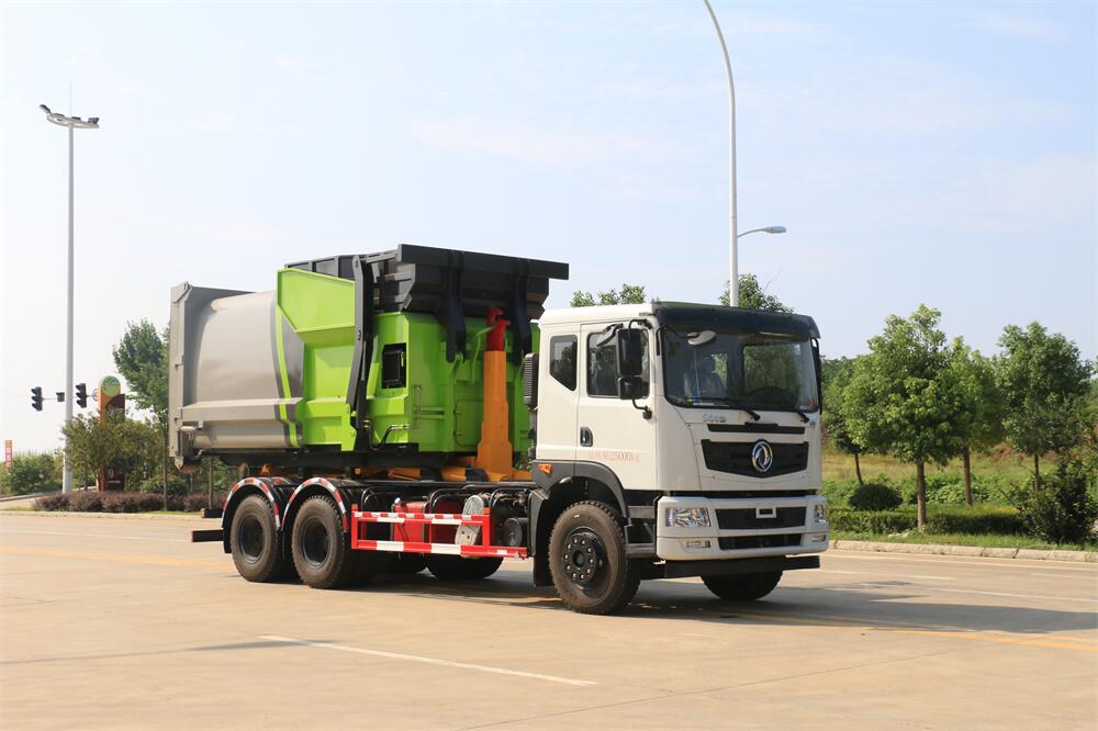 勾臂式垃圾車(車廂可卸式垃圾車)介紹: 車廂可卸式垃圾車又叫拉臂式垃圾車,是一種采用高新設計可伸縮的鉤臂,實現(xiàn)垃圾廂的二次吊裝,自吊上放下,可自行傾倒垃圾的環(huán)衛(wèi)設備。 拉臂式垃圾車結構簡單,操作穩(wěn)定方便,裝卸效率高,機械化程度高,節(jié)省人力。鉤臂垃圾車一車可帶多個垃圾廂,在裝卸的運輸過程中可有效地避免二次污染。 拉臂垃圾車采用高新設計可擺動的鉤臂,垃圾箱由框架、開啟油缸、滑輪、后門和若干加強框架與鋼板焊接而成。調(diào)換貨廂快捷方便,貨廂上帶蓋(倒垃圾時可翻開),鉤臂垃圾車垃圾廂體可選用碳鋼、不銹鋼材質(zhì)、內(nèi)部采取環(huán)氧樹脂防腐處理,改裝部分與原車底盤為可分離式,維修方便且保持了原車的機動性及行駛性能。