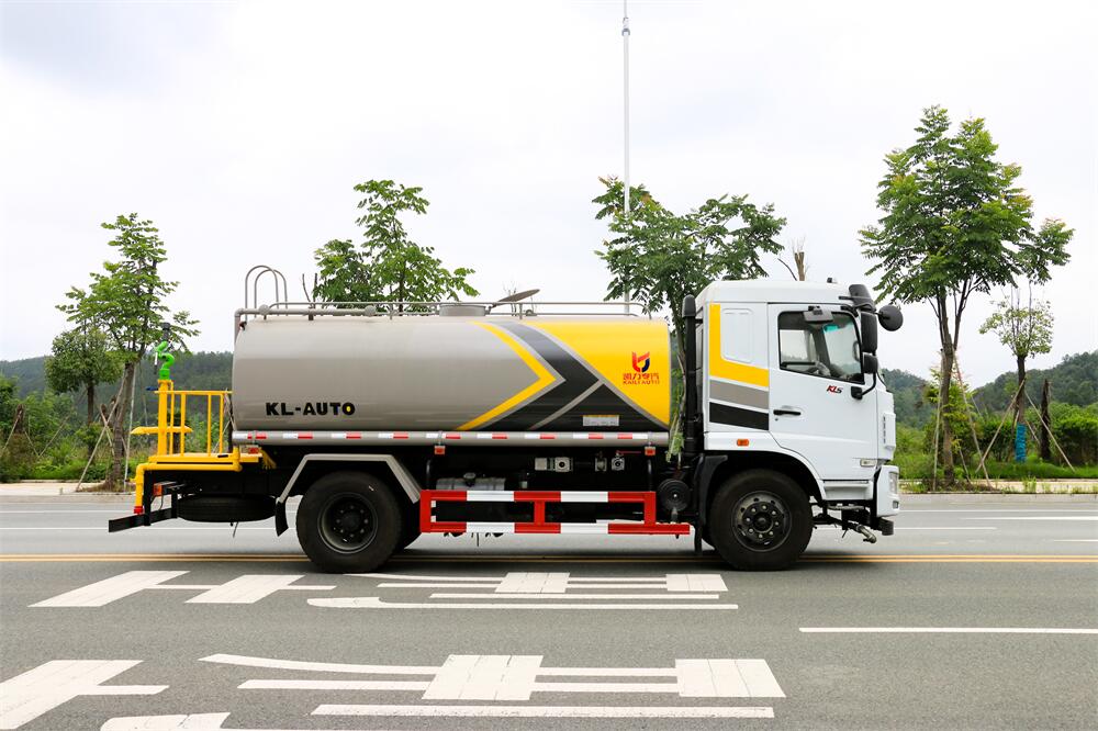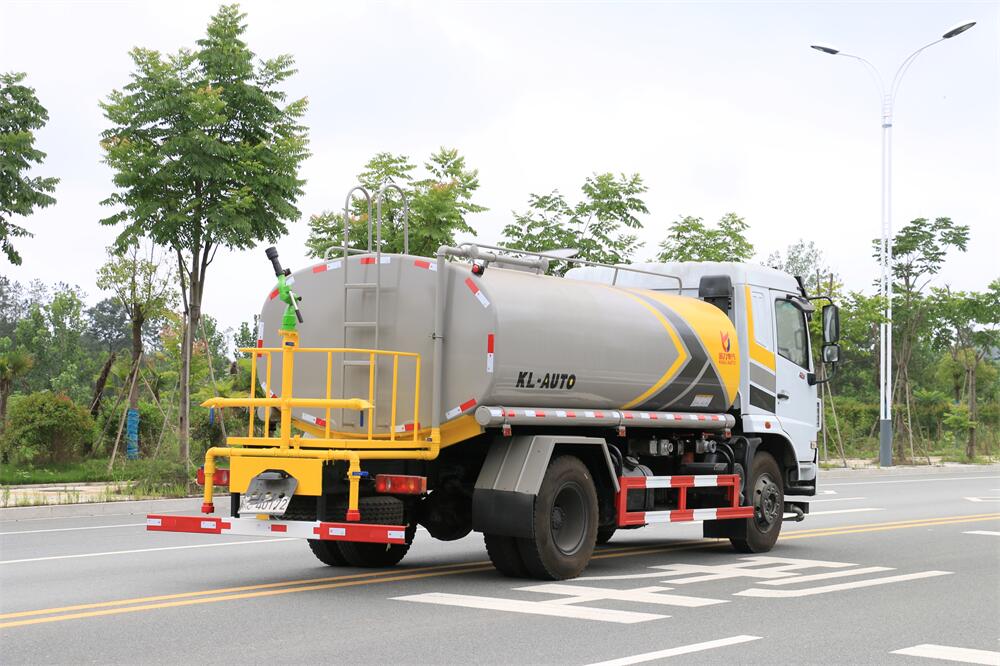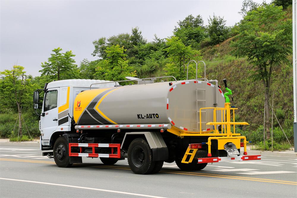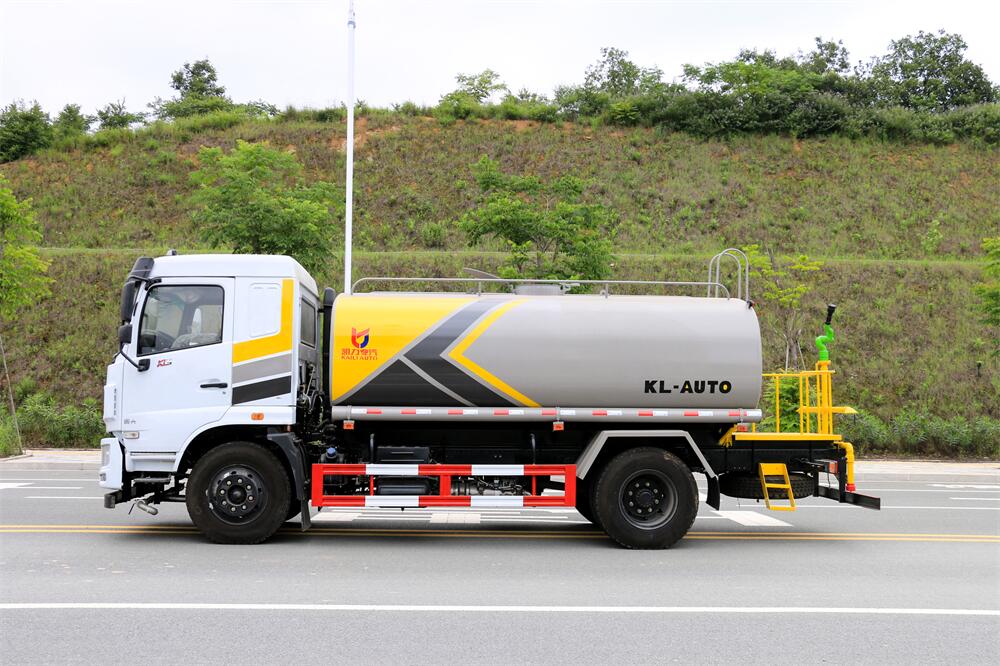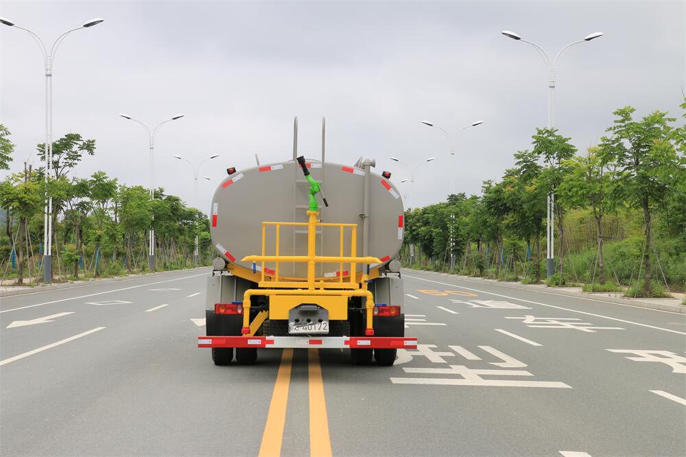 灑水車前裝有鴨形噴嘴或圓頭沖嘴,后面裝有圓柱開灑水噴嘴或蓮蓬頭噴嘴,后部有一工作平臺,裝配有水炮。后部還可裝8個(gè)噴嘴(選裝)。