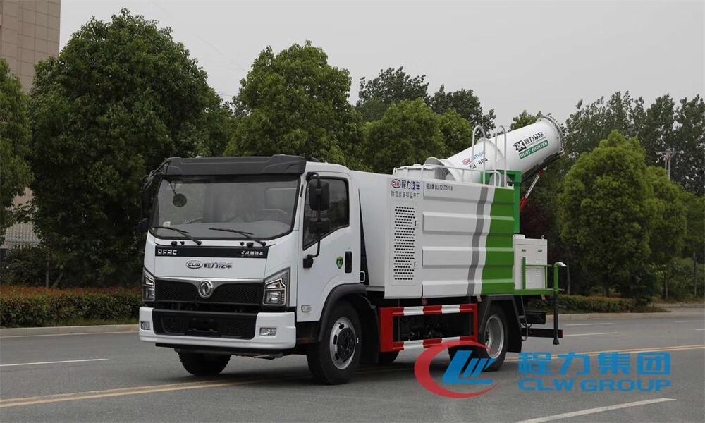 上裝配置:罐體容積為 12立方,選配風送式霧炮機組射程30米、40米、50米、60米、80米、100米、120米霧炮,罐體鋼板為4mm碳鋼Q235材質,罐內隔板具有防波作用,以減輕汽車行駛時罐體液體沖擊,罐體及整車外形尺寸按照公告。帶大功率專用灑水泵,泵可自吸自排,整車前沖、后灑、側噴、帶65消防接口,后平臺配CLW-50、CLW-60、CLW-80、CLW-100、CLW-120型風送式霧炮機組;罐體前封頭配大功率柴油發電機組;前封頭帶水位計,后平臺主管路帶1寸澆花接口,后爬梯。帶兩根輸水管及陰陽端。罐體顏色:銀/灰/綠,罐體兩側噴“多功能抑塵車”字樣,貼反光標示。