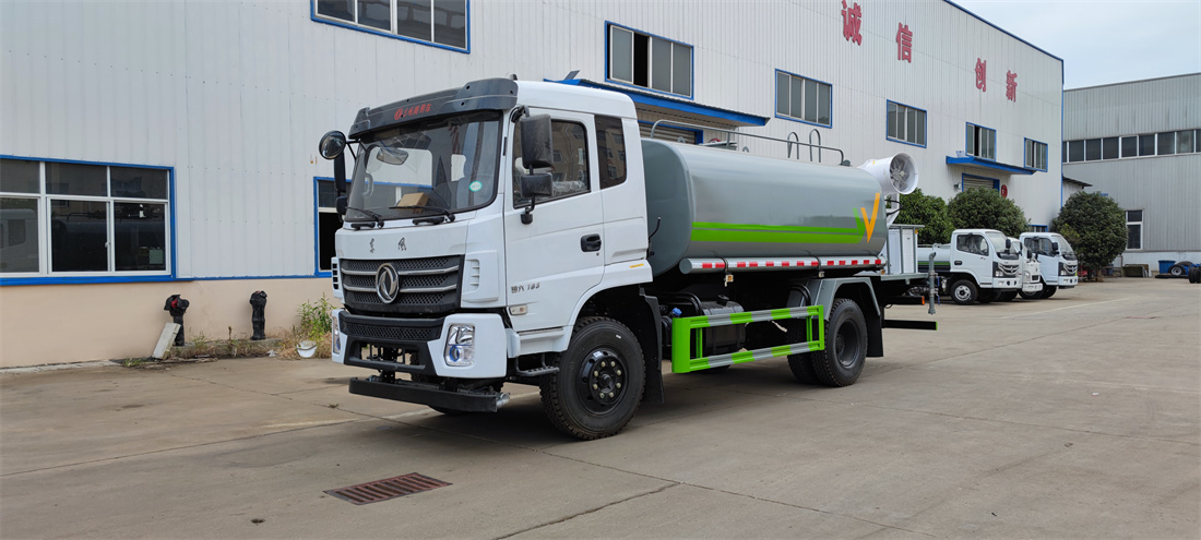 上裝配置:罐體容積 12立方,風送式霧炮機組30米,40米選擇,罐體采用國標Q235碳鋼材質,罐體厚度4MM,前后封頭5MM加厚型,罐體內雙層隔板具有防波蕩作用,以減輕汽車行駛時罐內液體沖擊;灑水車整車及外形尺寸嚴格按照**機動車公告制作而成;裝配大功率專用灑水泵,前沖、后灑、側噴、后平臺帶綠化灑水炮,灑水炮可全方位旋轉,可連續調成直沖狀、大雨、小雨、毛毛雨;配消防接口,自流閥,濾網,帶自吸自排功能。前封頭帶水位計,后平臺主管路帶1寸澆花接口,后爬梯,帶1個消防接頭,帶1個自流閥,1個過濾裝置,其余標配。