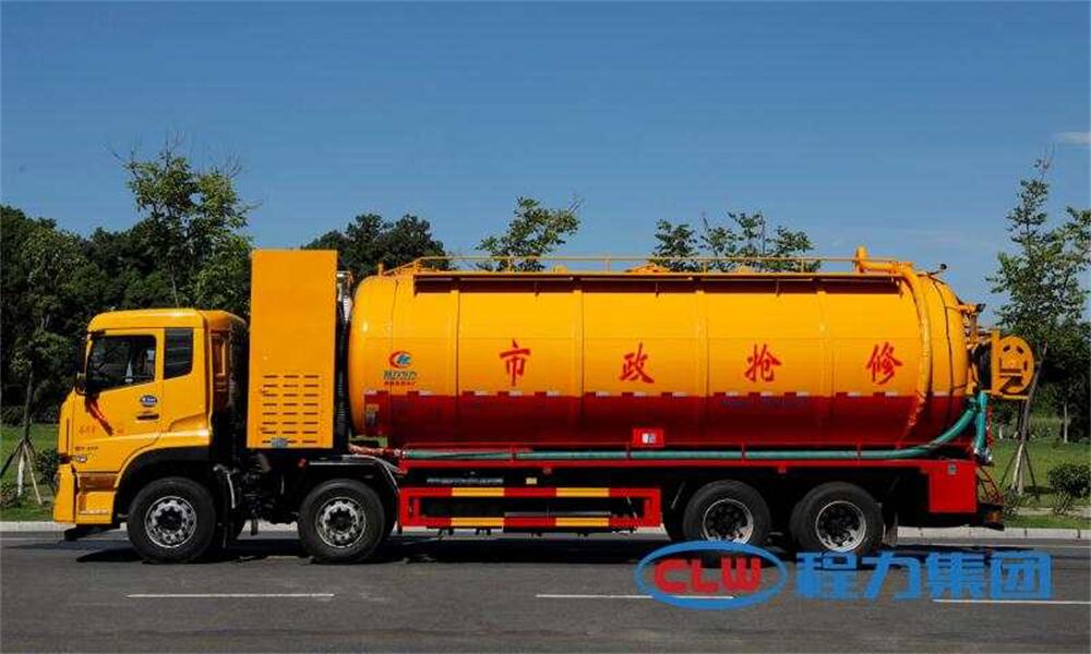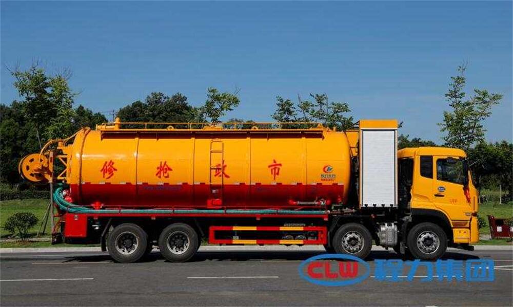 上裝配置:罐體容積為 30 立方(水污可自由 分配),罐體 8mm 厚,封頭 8mm 厚,水罐、污 罐可互通,用 100 球閥**開(kāi)關(guān);清洗部份采 用雙耀高壓泵,壓力 20Mpa,流量 330L/min, 配 80 米直徑 25 高壓管帶液壓卷盤;吸污部份 采用濰柴420馬力副發(fā)動(dòng)機(jī)帶山東SK-42水循 環(huán)泵(副發(fā)自帶),吸污罐帶舉升,尾部加裝 一個(gè) 600mm 快開(kāi),罐體后尾部一個(gè) DN150 不銹 鋼排污口,一個(gè) DN150 不銹鋼偷排,兩個(gè) DN100 吸污球閥帶出口盤,一個(gè)視污窗,兩根 10m 吸 污管,一套陰陽(yáng)端,壓力表,防溢閥,箭頭燈, 工具箱,淋管裝置,高壓泵帶氣吹水。配一個(gè) 9 公斤水雷噴頭,另帶一個(gè) 80 公分手持洗車 噴頭。