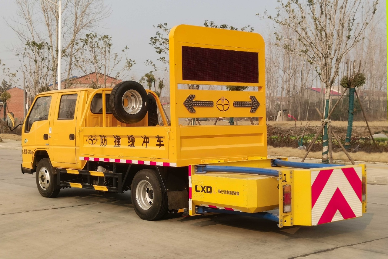上裝配置:箱體采用國(guó)標(biāo)優(yōu)質(zhì)板材制作,箱體后部防撞緩沖模塊采用國(guó)際知名技術(shù)產(chǎn)品暢行達(dá)70K/80K防撞緩沖模塊,防撞緩沖吸能模塊主要由車載防撞緩沖墊和導(dǎo)向標(biāo)志架組成,燈架上設(shè)有LED屏幕,LED箭頭指示燈,語音**示喇叭,LED爆閃燈等多種聲光**示系統(tǒng),充當(dāng)施工作業(yè)車輛后方的緩沖衛(wèi)士。如若發(fā)生追尾事故,能夠在肇事車輛和前方施工作業(yè)區(qū)域之間構(gòu)建一個(gè)緩沖區(qū)域,通過機(jī)具結(jié)構(gòu)變形吸收撞擊的能量,**限度地降低被保護(hù)人員及設(shè)備遭到碰撞的幾率。高性能液壓系統(tǒng),可實(shí)現(xiàn)快速舉升和落下操作,安全穩(wěn)定高效。