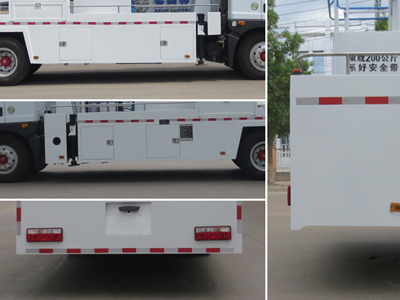 前伸:30mm;僅采用5200mm軸距;隨底盤選裝駕駛室;側面防護及后下部防護裝置材料材質:Q235,整體式結構,后下部防護裝置離地高度:480mm;ABS系統生產廠家,型號 :焦作博瑞克**技術有限公司,J ABS;主要專用裝置為折疊臂,用于搶修電力、通訊、路燈等高空作業. |