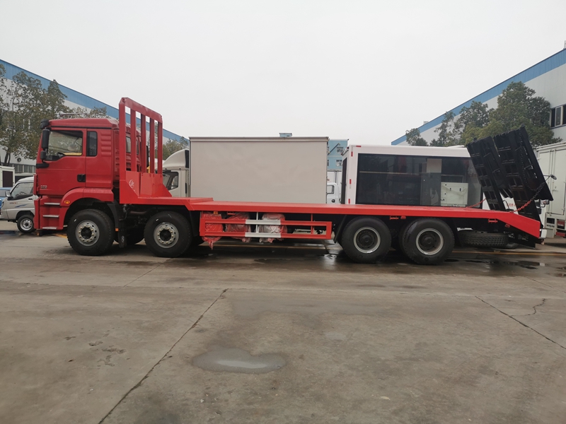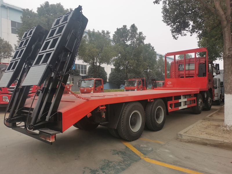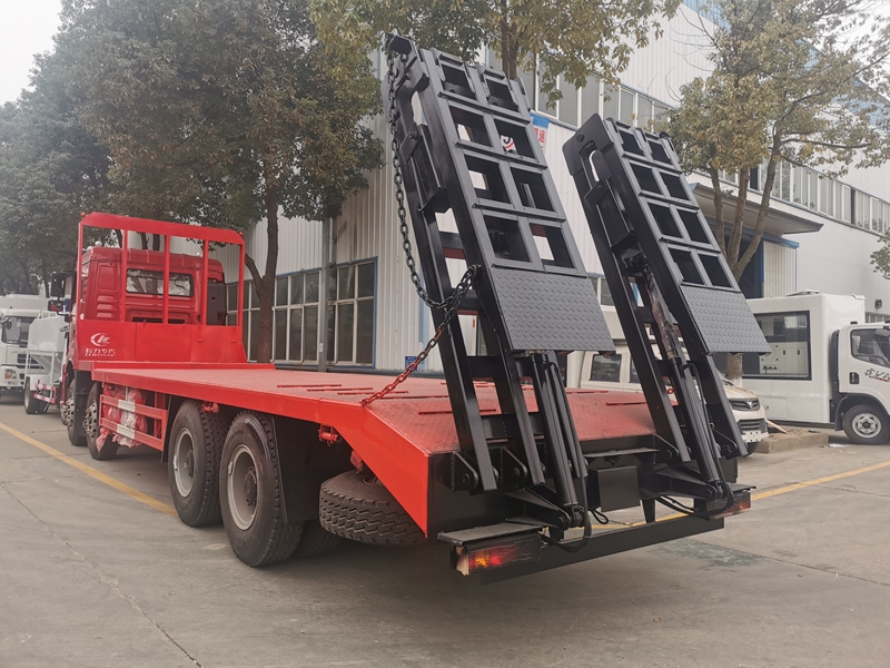 其他 | 備注:該車專用裝置為平板,用于工程機械和一些不可拆卸貨物的長途運輸.防護材料:Q235碳鋼,連接方式:左右側面與平板縱梁采用焊接連接, 后部防護與車架采用焊接連接,后部防護斷面尺寸(mm):50×120,后部防護離地高度(mm):490;隨底盤選裝同系列駕駛室、遮陽罩及保險杠,選裝不同樣式的爬梯.ABS系統生產廠家及型號為:廣州市科密汽車制動技術開發有限公司/CM4XL-4S/4K(4S/4M), 西安正昌電子有限責任公司/ZQFB-V, 浙江萬安科技股份有限公司/VIE ABS-Ⅱ;安裝具有衛星定位功能的行駛記錄儀.發動機WP12.375E50 對應的油耗值為:40.48。整車長/軸距/后懸對應關系為(mm):11900/1800+4575+1400/2600,11300/1800+3975+1400/2600,10900/1800+3575+1400/2600,10400/1800+3000+1400/2675.選裝不同樣式的爬梯結構。 |