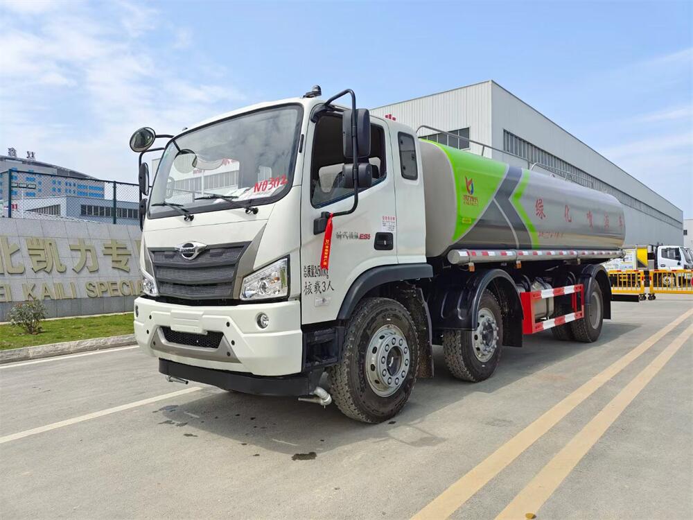 主要由發(fā)動機帶動變速箱,變速箱上安裝的取力器帶動灑水泵,灑水泵產(chǎn)生動力,將罐體內(nèi)部的液體通過管網(wǎng)噴灑出去。工作范圍:自吸高度:≥7m,灑水寬度:≥14m,**大射程:≥28m;可調(diào)節(jié)成柱狀,射程≥28m;也可調(diào)節(jié)成霧狀,射程≥5m。